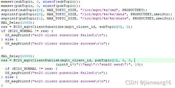 以下为STM32F407使用ec20的mqtt库,实现对接自建EMQX。