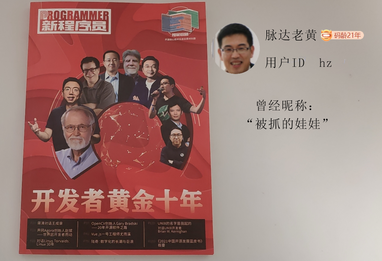 今天收到了CSDN寄来的《新程序员》,感慨万千,也忽然发现,自己在CSDN的注册账号已经有21年了,时间过得真快啊!