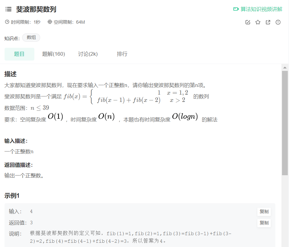 相信很多人已经了解了什么是斐波那契数列,这也是一道相对简单的题目,但是这道题的重点却不是解题,而是 了解剪枝操作,并且引入动态规划的思想.