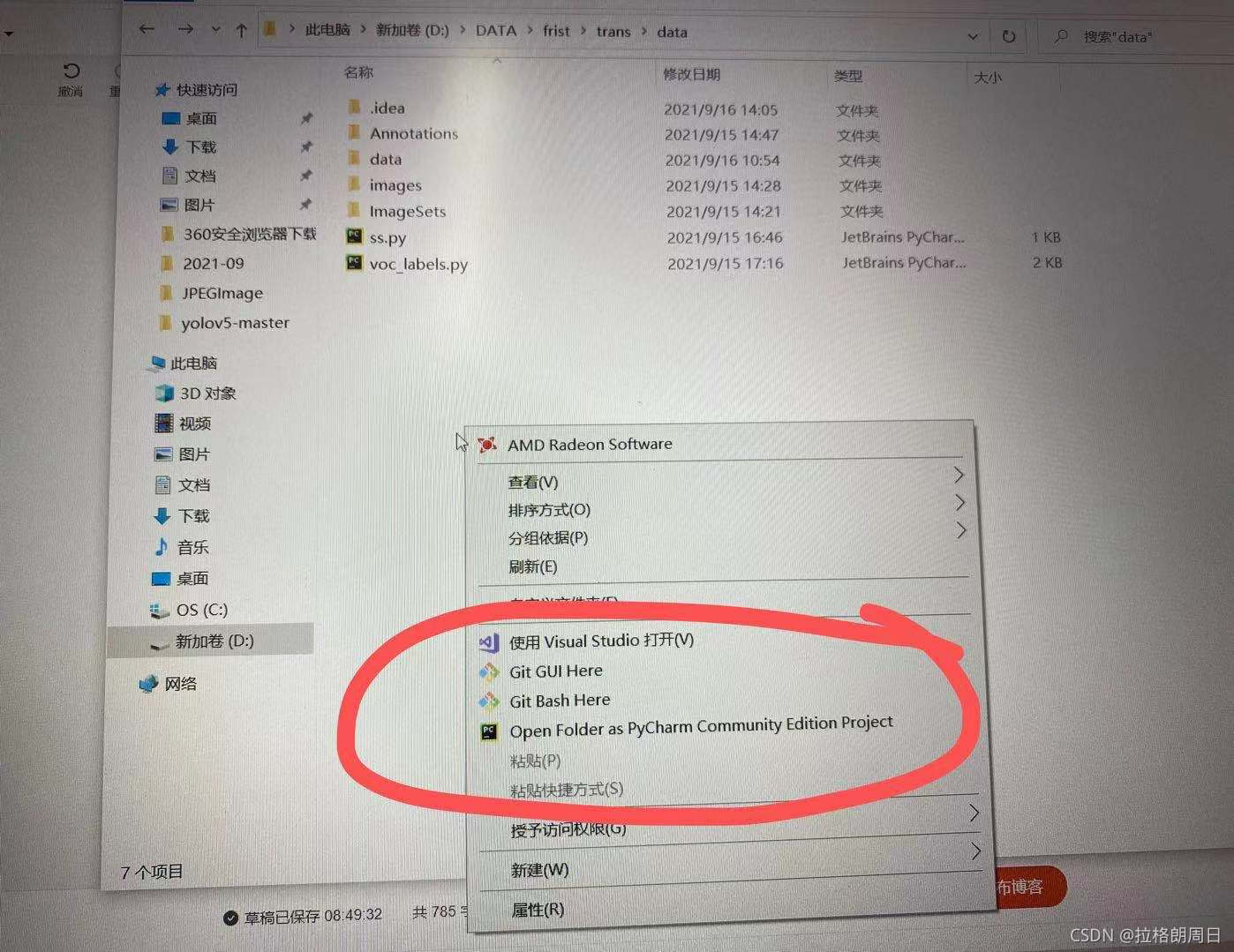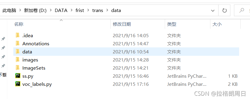 在你喜欢的位置新建trans文件用来转化。在trans里新建data文件夹,在data下再新建三个文件夹(Annotations,images,ImageSets),其中Annotations下存放.xml文件,images下存放图片,并在ImageSets里面新建一个Main文件夹。我看教程的时候会有疑问就是,怎么平白无故多了些别的,说的跟图片上的不一样,你不用管,我说啥就是啥就完事。(没错我说的就是我鼠标点的那个data哈哈哈,先不用管)