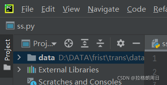 然后再你建的data文件夹下,右键打开pycharm,如下图新建一个ss.py文件(学妹起的这个名字我就也起了这个哈哈哈)
