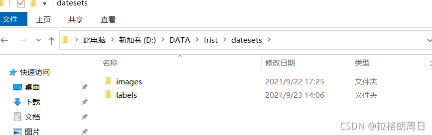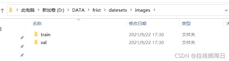 然后!在images下新建train和val,labels下也新建train和val,如下图