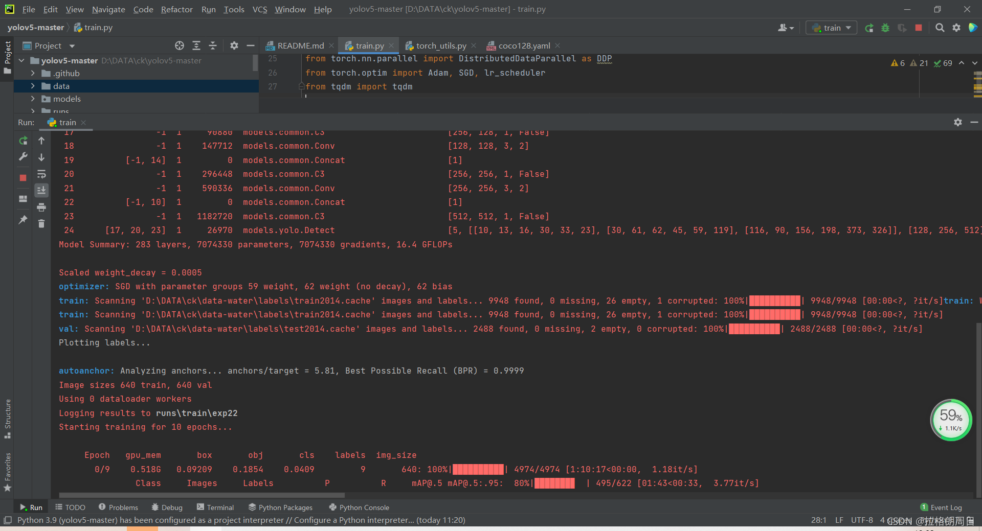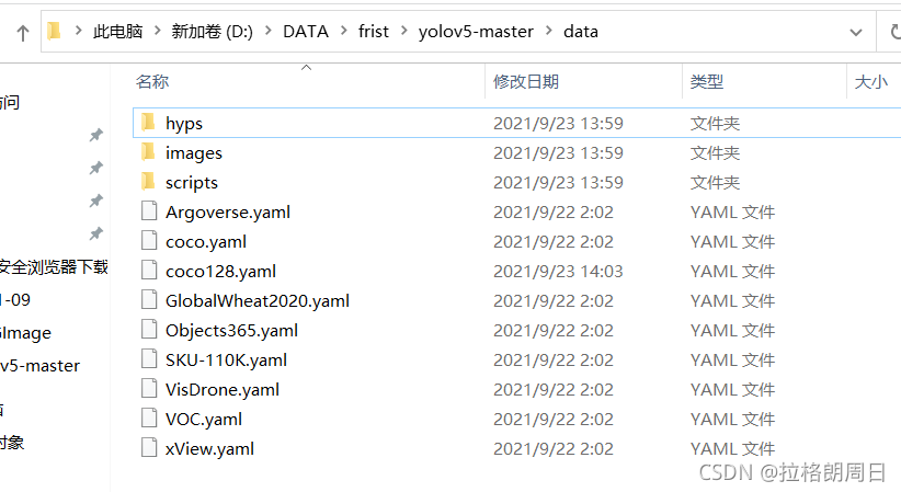 1.在data文件夹下新建一个yaml文件,这个yaml文件吧,我不知道他咋来的,txt文件改后缀名吗?sorry,i dont know hhhh。所以就改别人的就行,下载下来的那个里面就有一个,coco128.yaml,应该没啥用,那我就用用。用pycharm打开