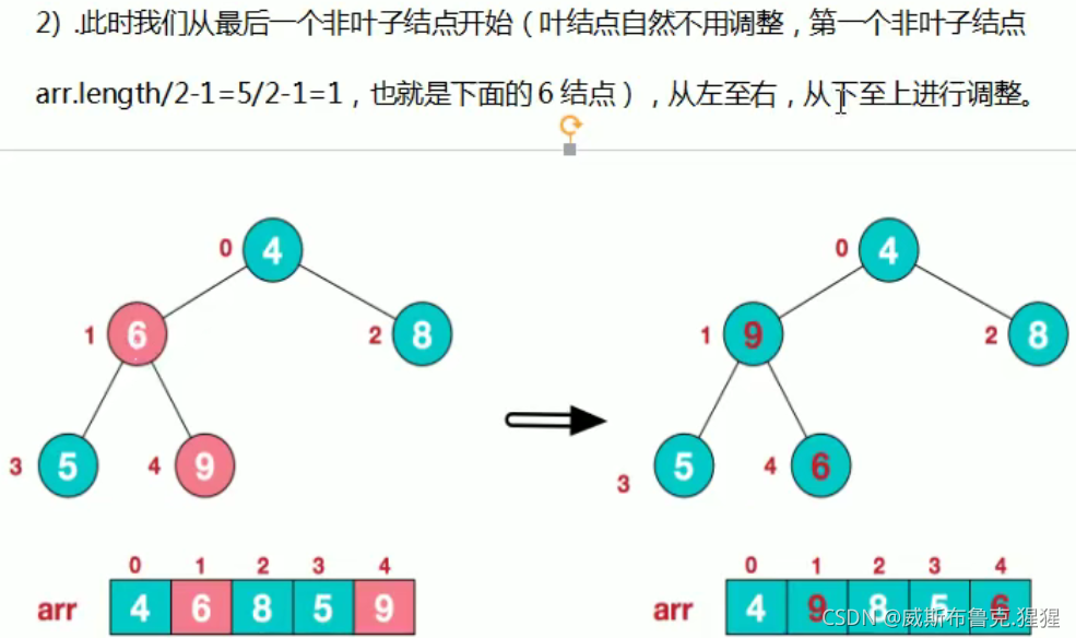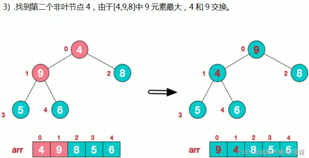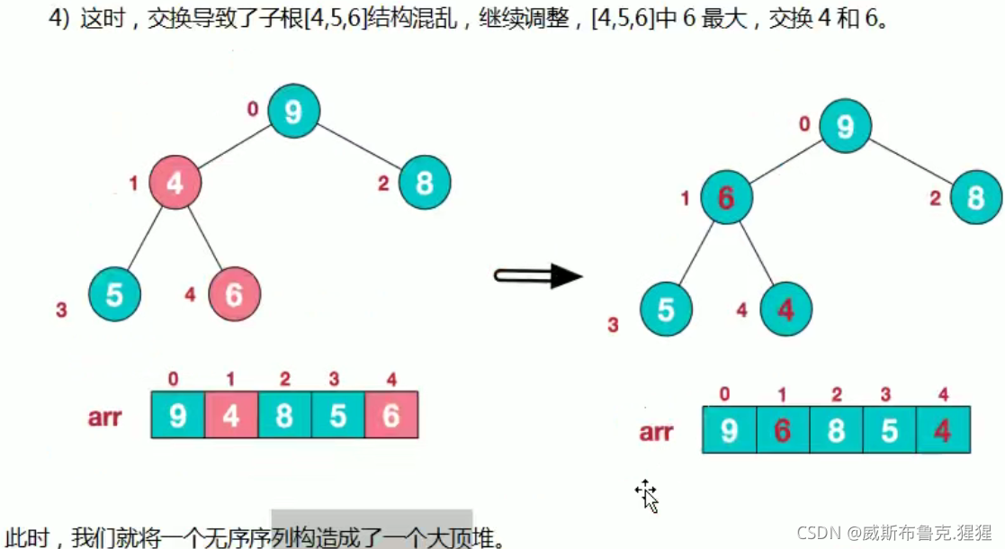 * 得到{4,9,8,5,6} 如果再次调用 addjustHeap 传入的是 i = 0 => 得到{4,9,8,5,6} => {9,6,8,5,4}