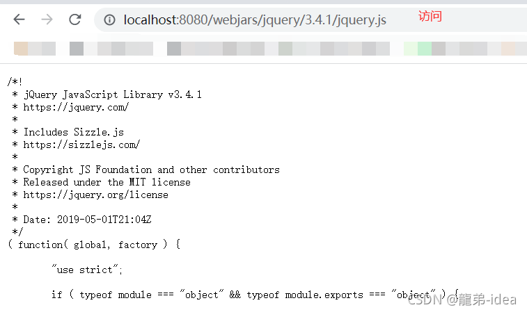 访问:http://localhost:8080/webjars/jquery/3.4.1/jquery.js