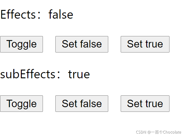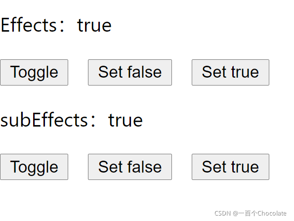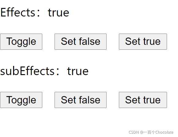 在此基础上,我再调用一下父组件的 setTrue 方法试试,结果如下: