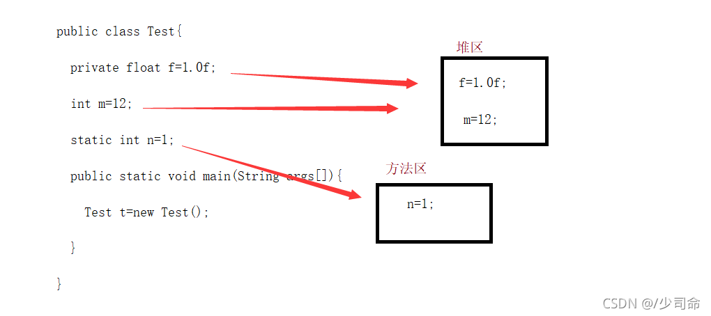 由题意知,f和m放在堆区,n在方法区(静态成员变量放在方法区),f虽然可以引用,但f为浮点型,f=10.0; this不能访问静态变量;m为成员变量,要用引用访问,不能用类名访问;类名可以访问静态变量,所以选择D
