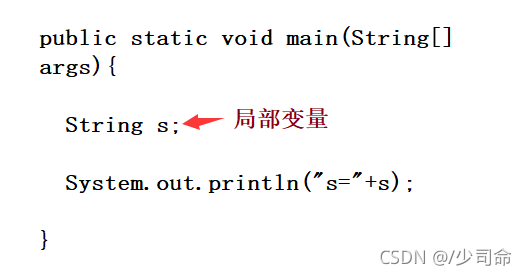 如果我们使用成员变量,成员变量将会赋初值,局部变量使用一定要初始化