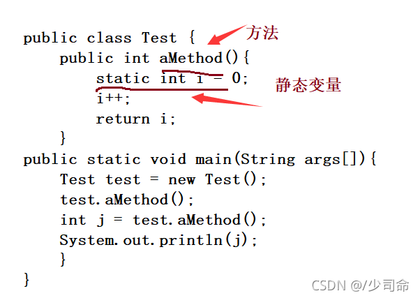 在方法里面不能定义静态的变量,静态的变量属于类变量,不能编译通过