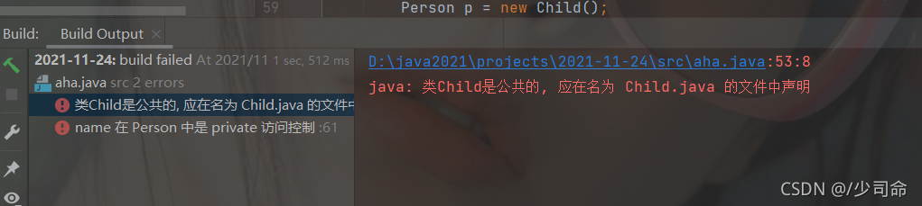 被 private 修饰的成员变量或者成员方法, 不能被类的调用者使用,编译出错