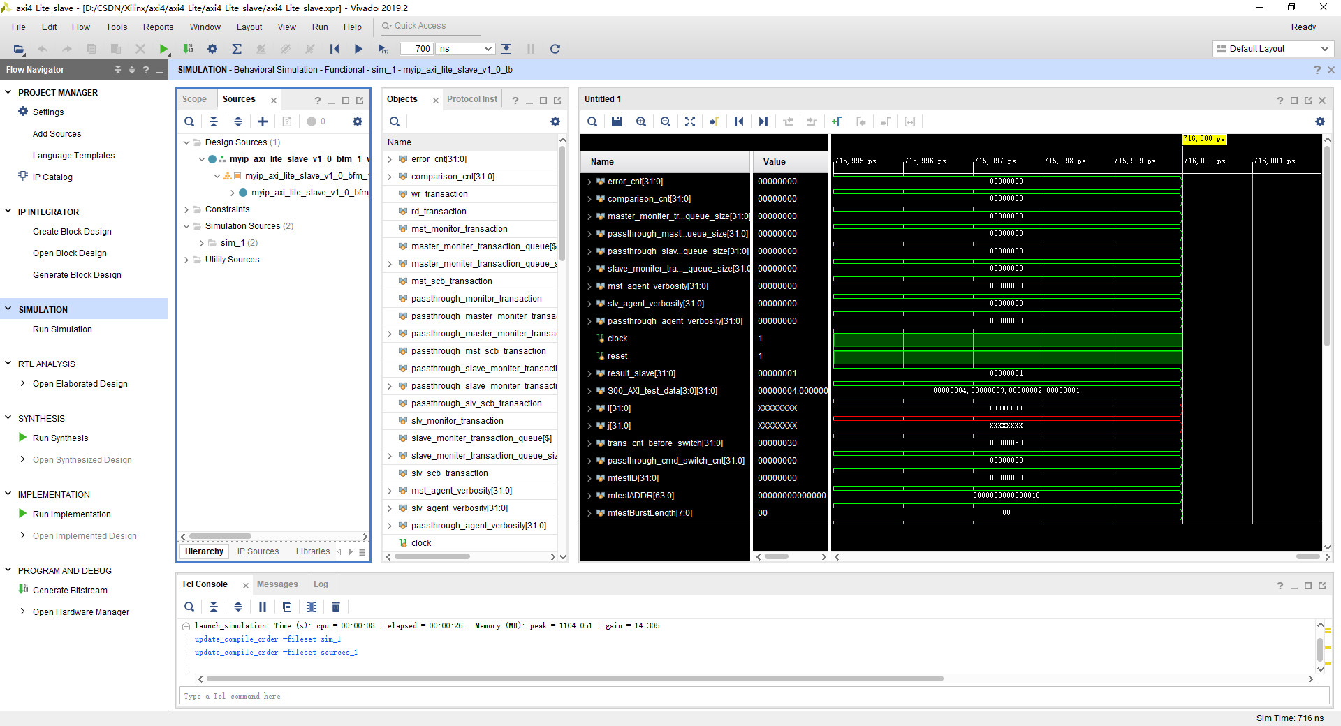 接下来使用Vivado自带的仿真器来进行仿真,观看仿真结果
