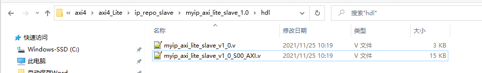 在此路径下生成了源码(第2个文件)文件,和顶层例化文件(第1个文件,这个不用管)