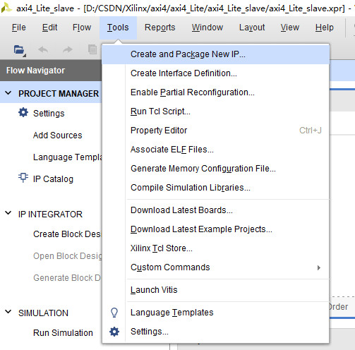 首先新建一个工程,然后点击Tools-----create and package new ip