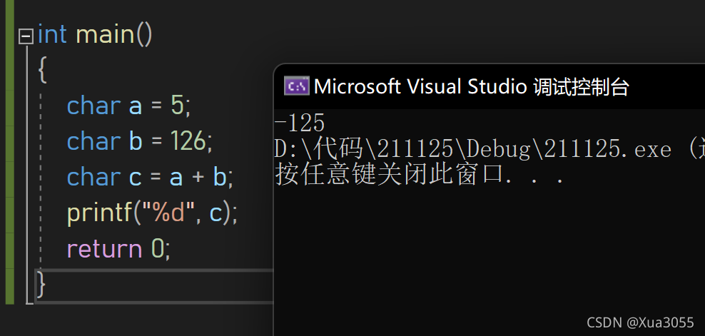 结果为什么是-125呢?这里涉及到整形提升这个概念。
