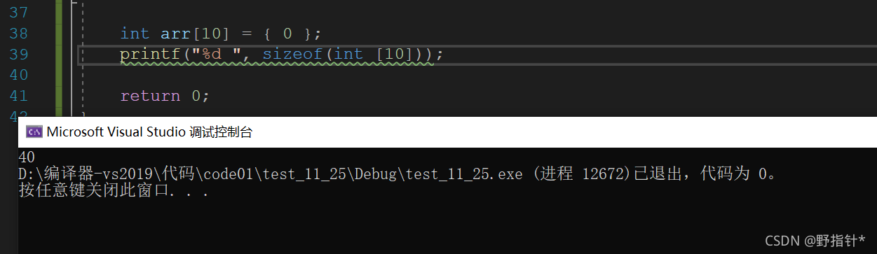 首先sizeof()括号内加上数据类型会计算出数据类型的大小,由上图我们不仅可以知道,数组也有类型,我们还知道,数组的类型是怎么表示的.