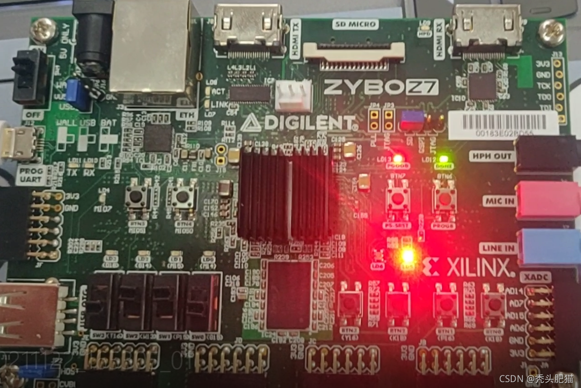 将zybo z7连接电脑,之后点击open hardware manager,点击open target - auto connect。最后将比特流文件烧录进ZYBO Z7。绿灯亮起,即可以正常使用功能。