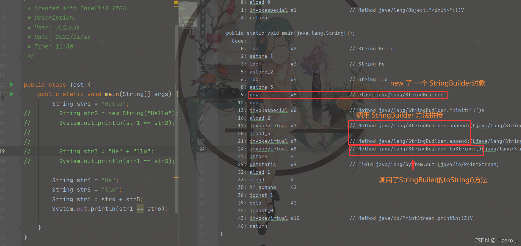 打开生成的文本文件 , 在编译文件中可以看到 , 代码在执行的过程中 , 创建了一个 StringBuilder 对象进行拼接字符串 , 主要是在后面还调用了一个 toString() 方法
