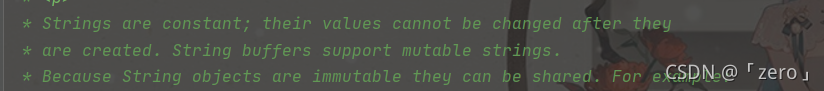 Java 中的 String 类代表字符串 , 在程序中使用 " " 定义的内容都是字符串 , 字符串是常量 , 它们的值在创建之后不能更改.