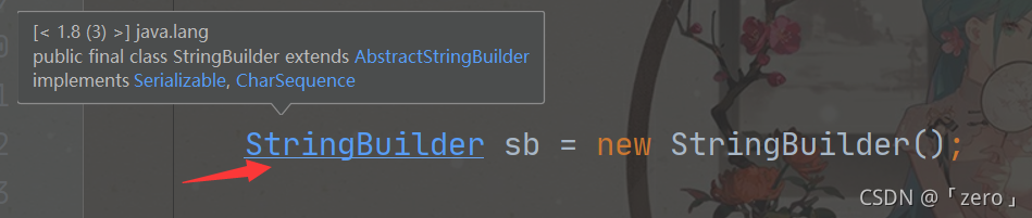 构造方法不是很多 , 这里就不介绍使用了 , 接下为了更好的了解 StringBuilder 类 , 我们去查看一下 StringBuilder 实现文件 , 在 IDEA 里使用 ctrl + 鼠标左键 点击 StringBuilder 转到实现文件