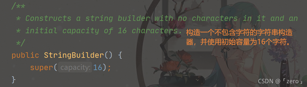 // 构造一个没有字符的字符串构建器,初始容量为16个字符。