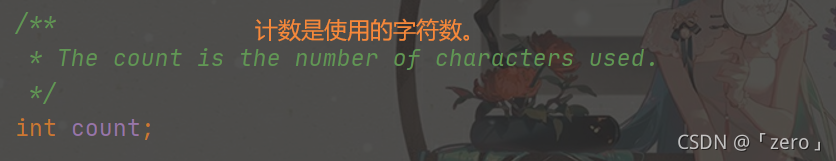 getChars( ) 方法 , 传了四个参数 (0 , len , value , count ) , 其中 len 是待拼接字符串长度 , value 是底层的数组 , 那 count 是什么呢 ? 我们可以往上找 , 找到 count 的定义位置 , 文档说 , count 是记录使用的字符数 , 也就是说记录了当前 value 数组中有多少个字符