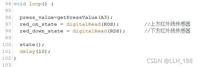 (3)代码主体loop() 调用状态检测函数,循环运行