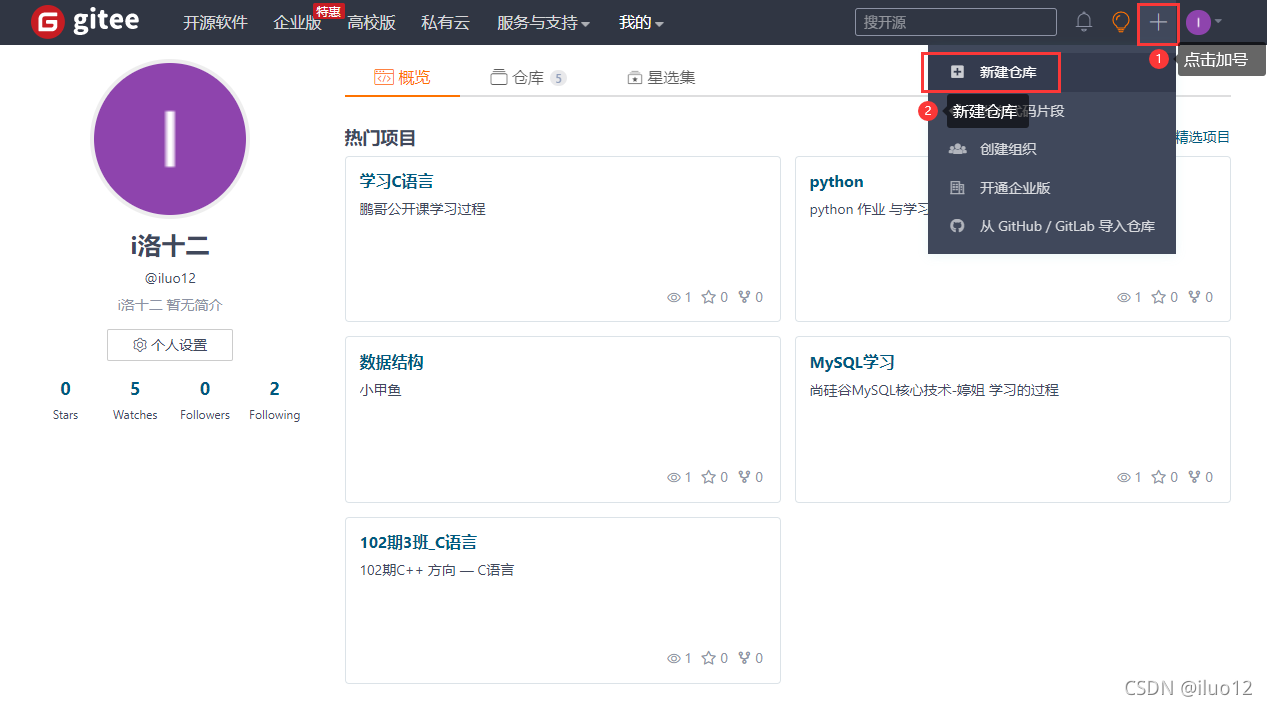 1.创建gitee仓库