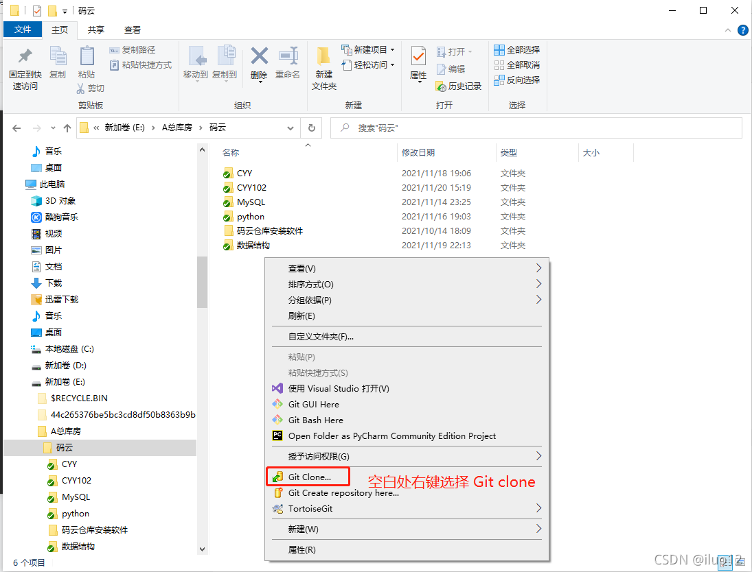 2.空白处鼠标右键点击Git Clone