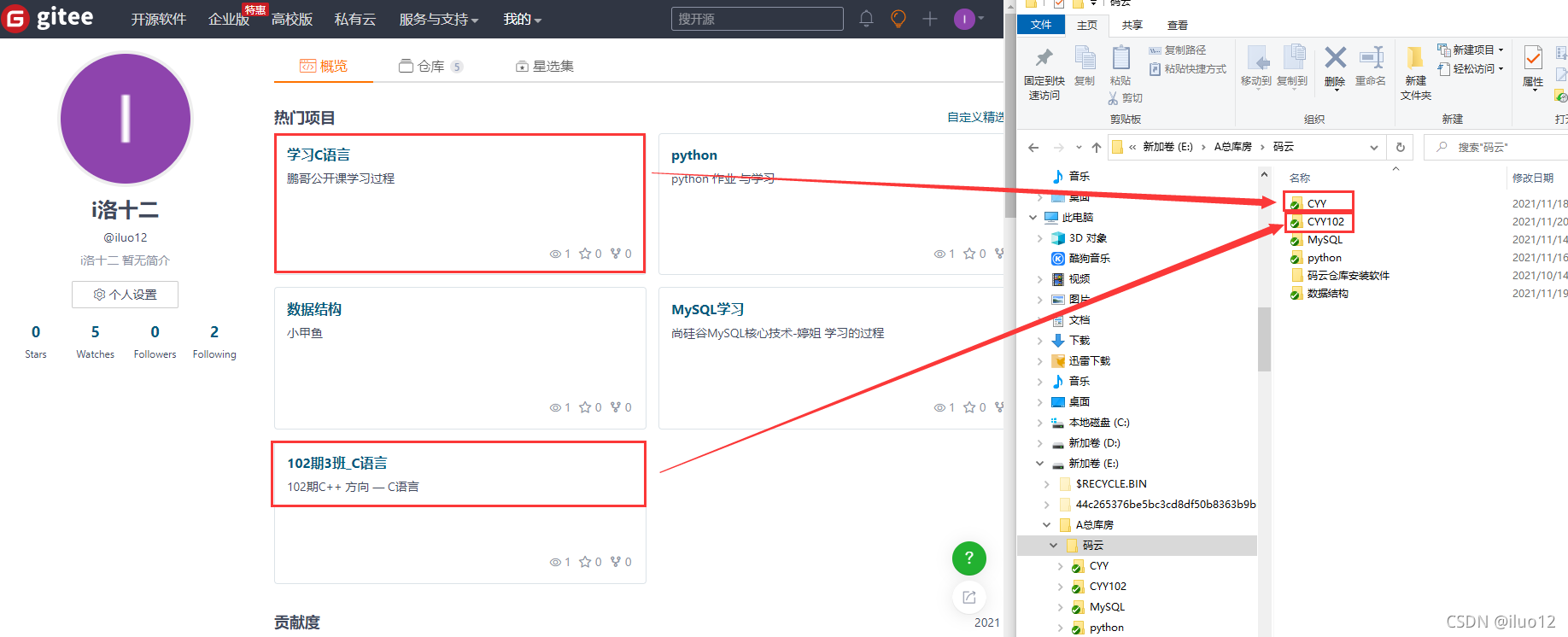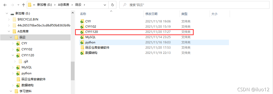 例如:CYY/CYY102 这个文件夹是 gitee自动创建的