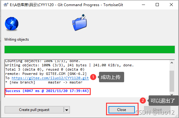3.成功时会显示Success 点击close 退出即可