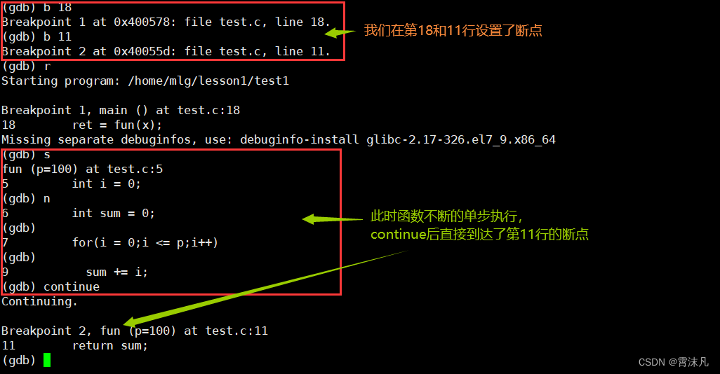 | continue | c | 从当前位置开始连续执行程序,遇到断点停下 |