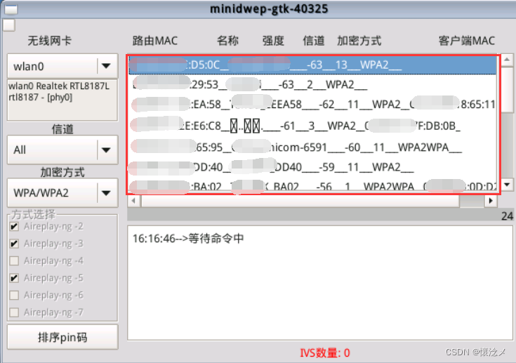 本次使用水滴配合8187网卡跑PIN,通过软件扫描到支持WPS操作的路由器wifi,使用PIN码一次又一次的取验证,最后拿到该wifi的PIN码继而拿到密码。