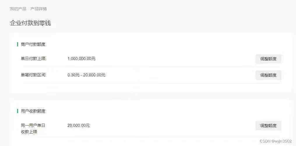如果应用场景有大额的付款需求,开通后也是支持根据实际需求进行提额申请的。其中最高申请额度为:单用户单日单笔额度上限为2W,单日付款额度为100W;