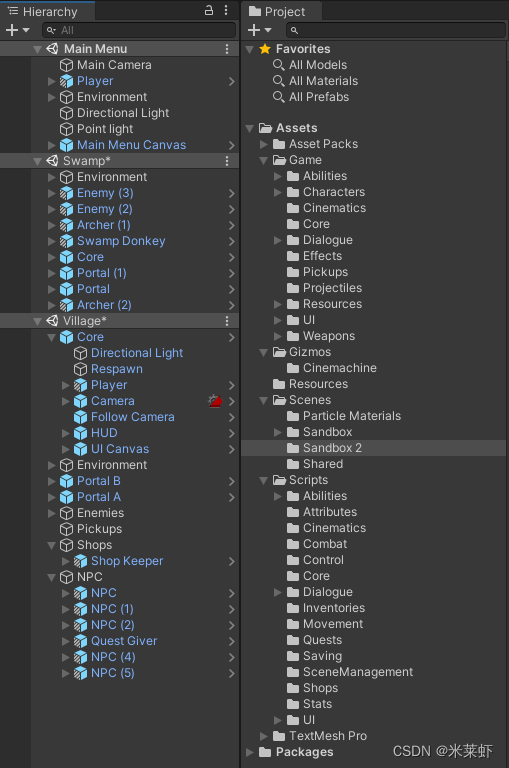 using System.Collections;using System.Collections.Generic;using UnityEngine;namespace RPG.Core{ public class FollowCamera : MonoBehaviour { [SerializeField] Transform target; void LateUpdate() { transform.position = target.position; } }} 其他一些具体的细节以及优化有机会再和大家分享,下面呈现部分重要的代码