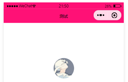 设置步骤: app.json -> window -> navigationBarTitleText 需求:把导航栏上的标题,从默认的 “ WeChat ”修改为“测试 ”,效果如图所示: