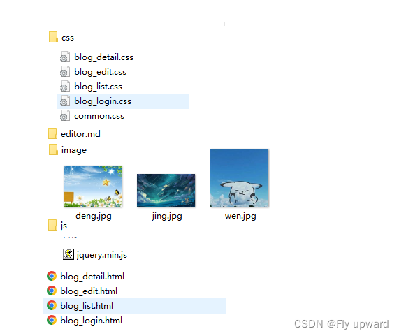 <head> <meta charset="UTF-8"> <meta http-equiv="X-UA-Compatible" content="IE=edge"> <meta name="viewport" content="width=device-width, initial-scale=1.0"> <link rel="stylesheet" href="css/common.css"> <link rel="stylesheet" href="css/boog_detail.css"> <title>博客详情页</title></head><body> <!-- 这是导航栏 --> <div class="nav"> <img src="image/deng.jpg" alt=""> <span>我的博客系统</span> <!-- 空白元素, 用来占位置 --> <div class="spacer"></div> <a href="blog_list.html">主页</a> <a href="blog_edit.html">写博客</a> <a href="#">注销</a> </div> <!-- 这里的 .container 作为页面的版心 --> <div class="container"> <!-- 左侧个人信息 --> <div class="left"> <!-- 表示整个用户信息区域. --> <div class="card"> <img src="image/wen.jpg" alt=""> <h3>Fly Upward</h3> <a href="https://gitee.com/dafei-cloud">gitee 地址</a> <div class="counter"> <span>文章</span> <span>分类</span> </div> <div class="counter"> <span>2</span> <span>1</span> </div> </div> </div> <!-- 右侧内容详情 --> <div class="right"> </div> </div></body> 2)实现博客正文 编辑 blog_detail.htm。 博客内容中包含博客标题 (h3), 博客时间 (div.date), 博客正文 (p) 将正文编辑在div.right 标签内 <!-- 右侧内容详情 --> <div class="right"> <!-- 使用这个 div 来包裹整个博客的内容详情 --> <div class="blog-content"> <!-- 博客标题 --> <h3>我的第一篇博客</h3> <!-- 博客的时间 --> <div class="date">2022-05-10 20:00:00</div> <!-- 正文 --> <p> 把学到的知识记录下来. Lorem ipsum dolor sit amet consectetur adipisicing elit. Nulla alias tenetur ut velit ex voluptatibus consequatur quam exercitationem, assumenda ea blanditiis repudiandae? Repellendus tenetur nostrum asperiores molestias doloremque cupiditate maiores. </p> <p> Lorem ipsum dolor sit amet consectetur adipisicing elit. Quaerat vel omnis consectetur reprehenderit velit, mollitia perspiciatis porro natus sit iure laudantium rem quas quae. Perferendis mollitia sint aut rerum minima? </p> <p> Lorem ipsum dolor sit, amet consectetur adipisicing elit. Omnis aspernatur corporis autem nisi, aliquid exercitationem perferendis, repellat sequi labore ad expedita itaque quisquam aperiam? Voluptatem numquam cupiditate exercitationem quis earum. </p> <p> 从今天开始, 我要认真敲代码. Lorem ipsum, dolor sit amet consectetur adipisicing elit. Blanditiis veniam dolorem modi, sunt quo rem facere ut dolores inventore ratione nemo provident quae eius adipisci quidem facilis quod. Maxime, nam? </p> <p> Lorem ipsum dolor sit amet consectetur adipisicing elit. Quaerat vel omnis consectetur reprehenderit velit, mollitia perspiciatis porro natus sit iure laudantium rem quas quae. Perferendis mollitia sint aut rerum minima? </p> <p> Lorem ipsum dolor sit, amet consectetur adipisicing elit. Omnis aspernatur corporis autem nisi, aliquid exercitationem perferendis, repellat sequi labore ad expedita itaque quisquam aperiam? Voluptatem numquam cupiditate exercitationem quis earum. </p> </div> </div> 效果如下