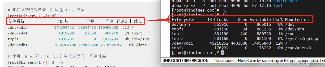 挂载是将其他机器上的磁盘映射到本机器上来,使得在本机器上可以访问其他机器的文件;如在IP1服务器上可以访问IP2上的资源。软连接是一种快捷方式,这两个区分好!8.6 umount