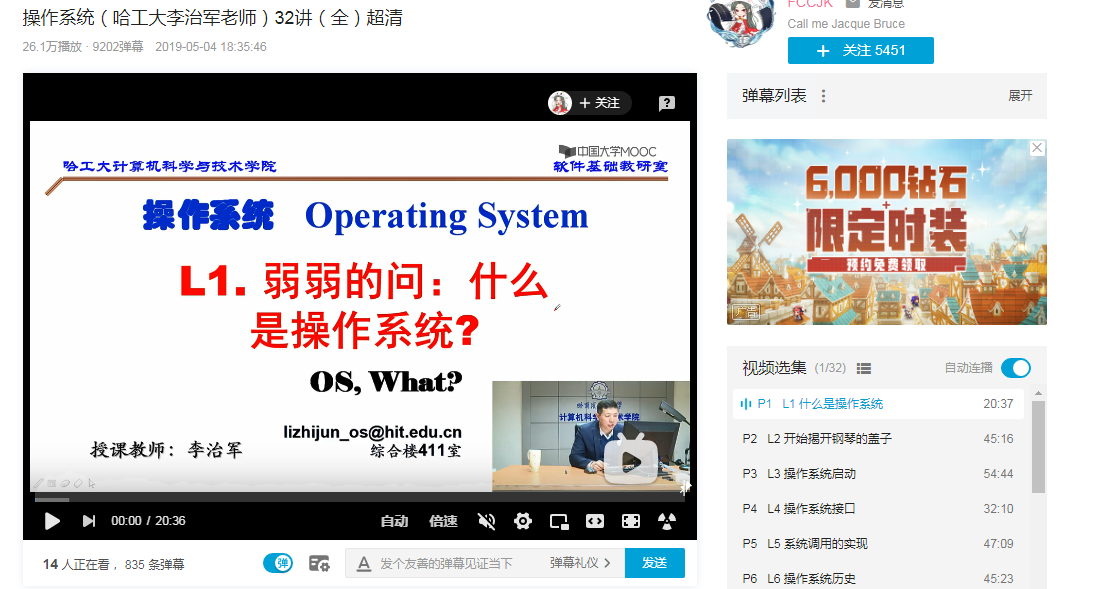 课程是由陈越与何钦铭共同录制,b站与慕课网都有,慕课网比较清晰一些