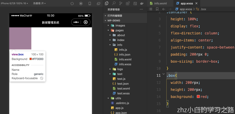 @import "./common/common.wxss"; 此时,刚刚所创建的box也加载了引入文件的样式。
