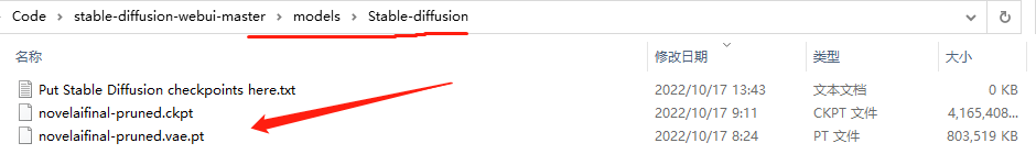 在 models/Stable-diffusion 里,可以看到这几个文件:
