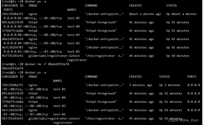 docker run -itd -p:83:80 --name test-01 -h test01 nginxdocker run -itd -p:84:80 --name test-02 -h test02 nginxdocker run -itd -p:88:80 --name test-03 -h test03 httpddocker run -itd -p:89:80 --name test-04 -h test04 httpd
