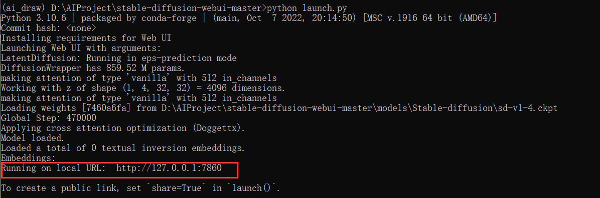 conda activate ai_draw 接着进入stable-diffusion-webui根目录运行