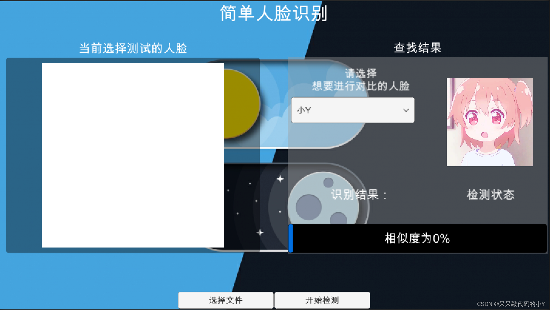 增加一个打开文件夹选择文件的功能,可以让我们手动选择照片进行对比增加一个检测结果相似度的UI显示,优化显示效果增加一个对比人脸的选项,可自定义多款人脸对比搭建一个UI效果如下: