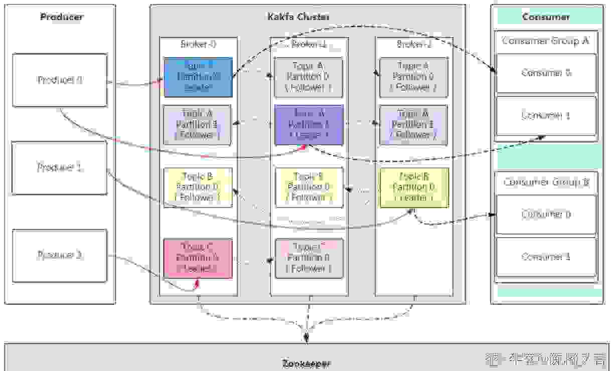 Leader 和若干个 Follower。生产者发送数据的对象,以及消费者消费数据的对象,都是 Leader。 Follower负责实时从 Leader 中同步数据,保持和 Leader 数据的同步。Leader 发生故障时,某个