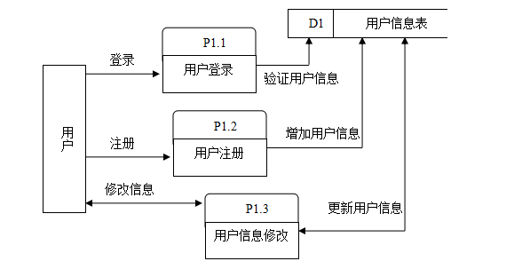数据流图是描述系统中数据流程的图形工具。在本系统中,没有登录的用户提交注册信息、提交登录信息,登录后可以购买商品、提交订单、修改个人信息。管理员可以对商品信息、订单信息、用户信息进行管理。这其中涉及到了对各个数据库的信息处理。对本系统进行分析,可以得到以下几个数据流图: