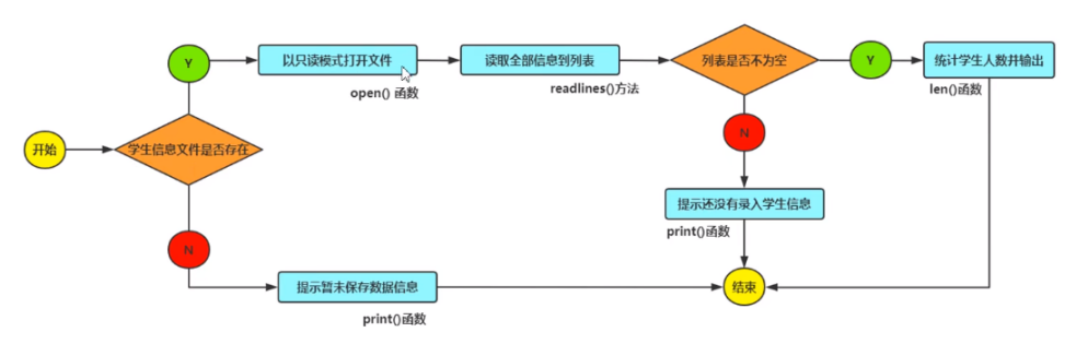 def total(): if os.path.exists(filename):#判断文件是否存在 with open(filename,'r',encoding='utf-8') as rfile:#只读的模式打开文件 students=rfile.readlines()#获取文件中全部内容,存入列表中 if students: print(f'一共有{len(students)}名学生') else: print('还没有录入学生信息') else: print('暂未保存数据.....')