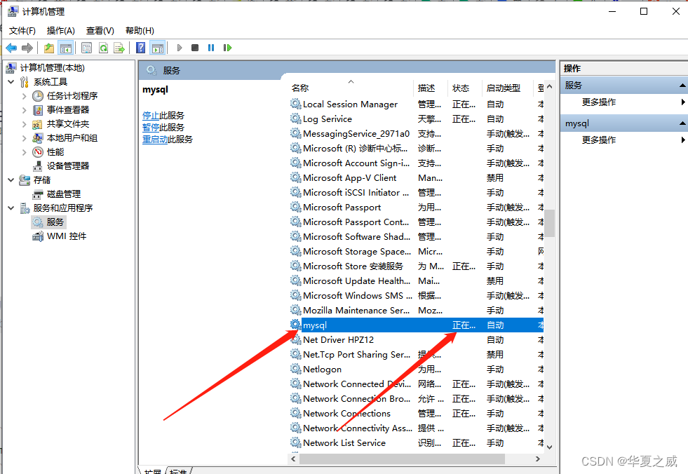 找到mysql服务,右键启动: