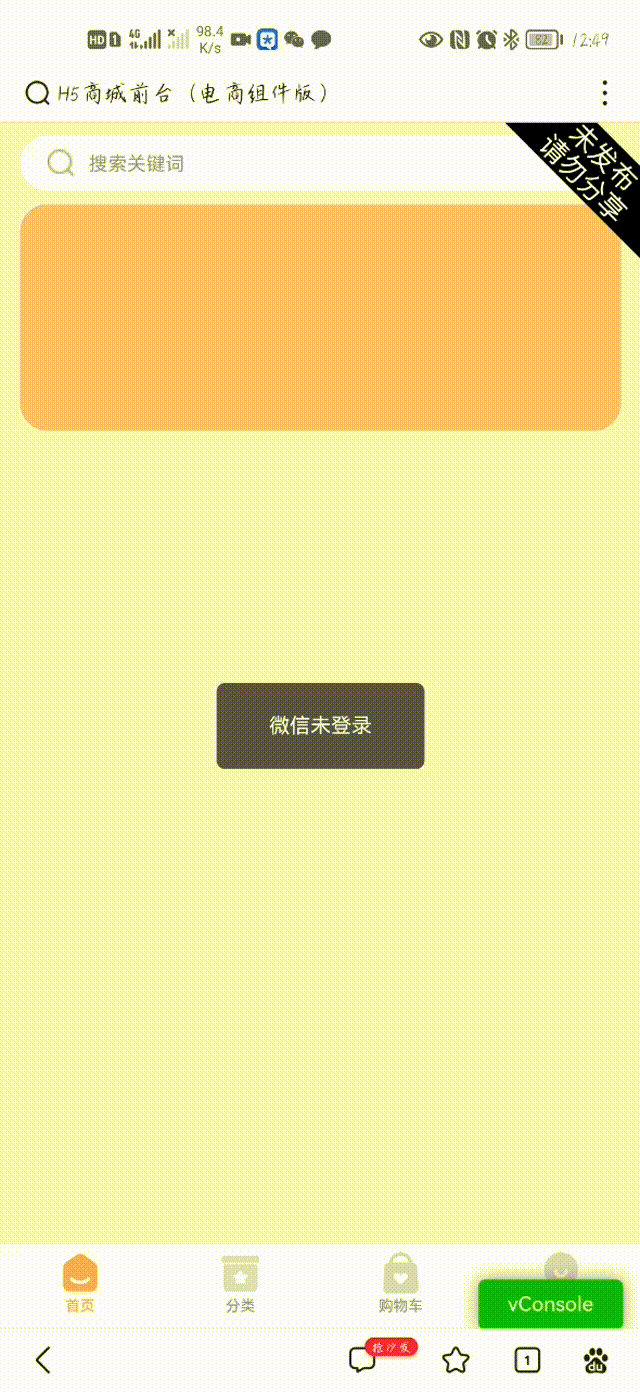我们选择的是H5路径生成的二维码,手机扫描出现下面的效果【因为没有找到什么相匹配的免费接口数据,所以就没有连接接口去调试】