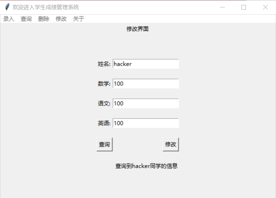 from tkinter import *from Login import *import tkinter as tkroot = tk.Tk()root.title('欢迎进入学生成绩管理系统')LoginPage(root)root.mainloop() Login.py