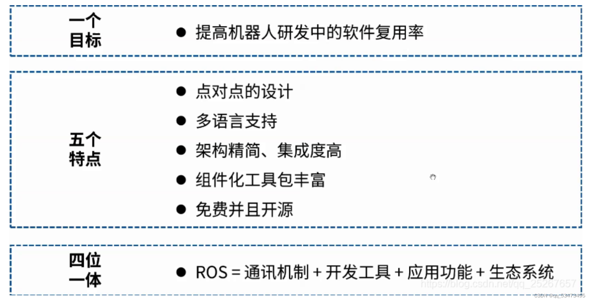 ROS的总体目标,也就是提高软件复用率,(下面我们主要介绍它的五个特点和四位一体。)